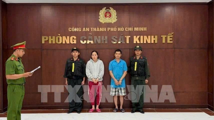 Hai 2 bị can là vợ chồng Nguyễn Thị Mỹ Phụng và Phạm Tuấn Thanh bị bắt tạm giam. Ảnh: TTXVN phát