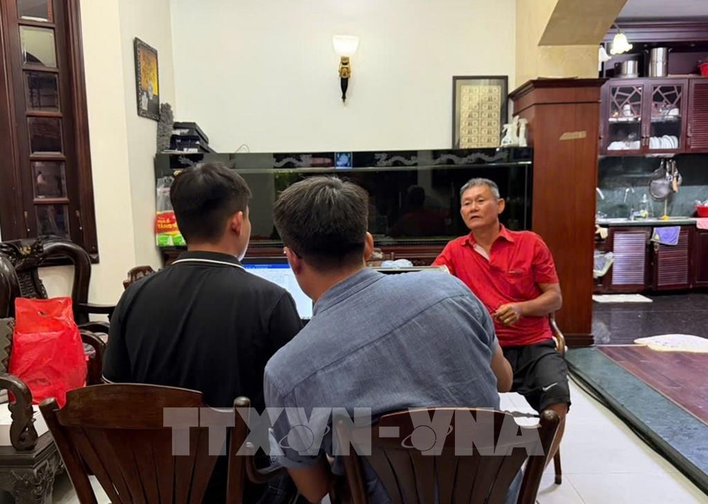 Điều tra viên làm việc tại hiện trường với đối tượng Nguyễn Duy Hiển. Ảnh: TTXVN phát