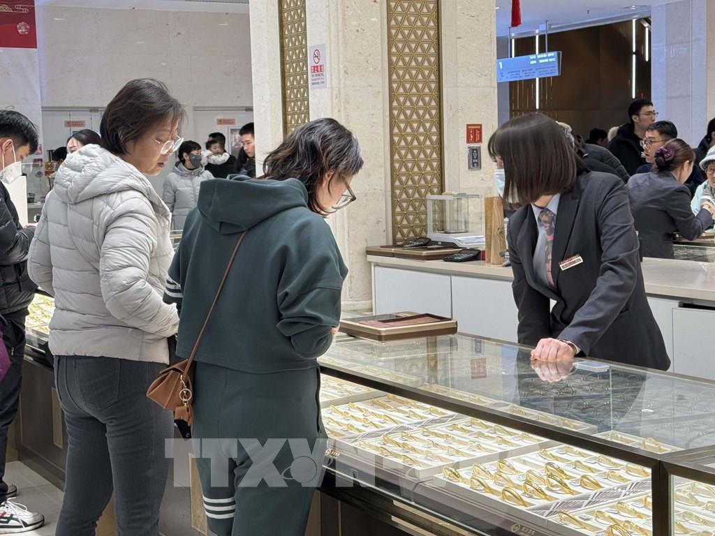 Người dân Trung Quốc mua sắm vàng. Ảnh: Công Tuyên-PV TTXVN tại Trung Quốc