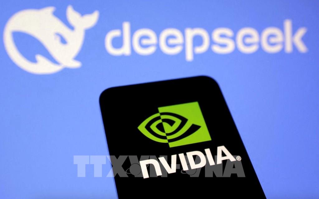 Biểu tượng của Tập đoàn chip Nvidia và DeepSeek. Ảnh: TTXVN phát
