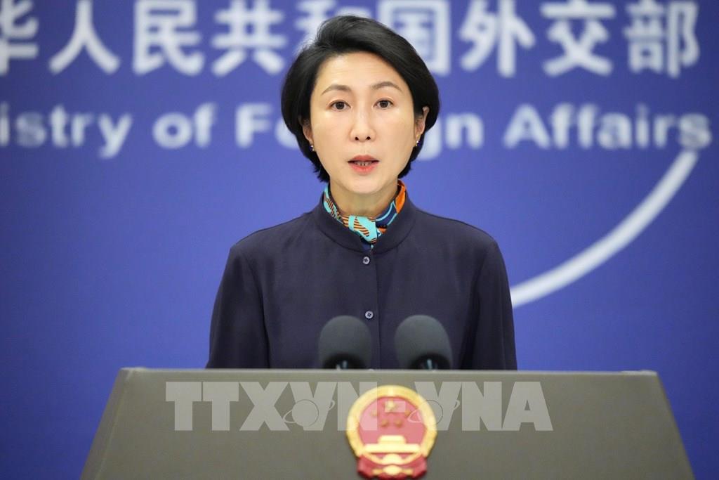 Người phát ngôn Bộ Ngoại giao Trung Quốc Mao Ninh phát biểu họp báo tại Bắc Kinh. Ảnh: Kyodo/TTXVN