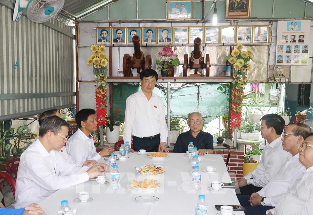 Đồng chí Nguyễn Duy Ngọc thăm hỏi, động viên, tặng quà gia đình Thiếu tướng, Anh hùng Lực lượng vũ trang Lê Xã Hội, nguyên Phó Tư lệnh Quân khu 9, tại phường Bình Thủy. Ảnh: Ngọc Thiện - TTXVN