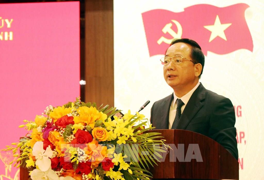 Đồng chí Nguyễn Duy Lâm, Bí thư tỉnh ủy Hà Tĩnh phát biểu tại hội thảo. Ảnh: Công Tường - TTXVN