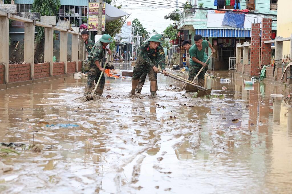 Trường Quân sự Quân khu V hỗ trợ đồng bào Hội An vệ sinh sau lũ