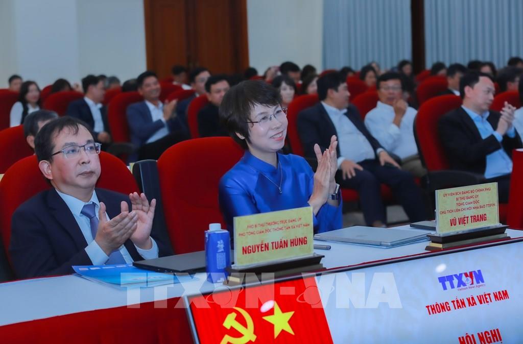 Ban lãnh đạo TTXVN điều hành Hội nghị. Ảnh: Phan Phương - TTXVN