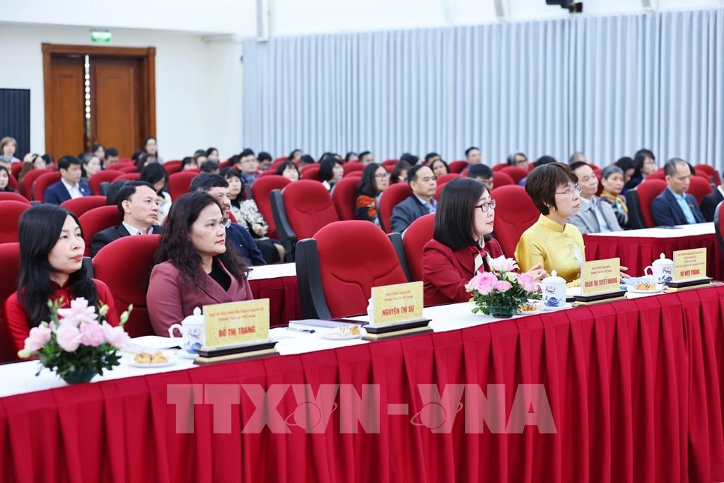 Phó Chủ tịch Quốc hội Nguyễn Thị Thanh và Tổng Giám đốc Vũ Việt Trang TTXVN cùng các đại biểu chụp ảnh chung tại buổi lễ. Ảnh: Minh Đức – TTXVN