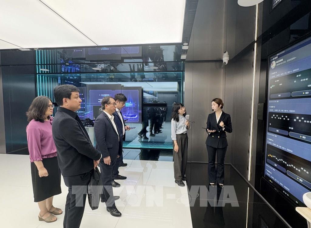 Đoàn đại biểu TTXVN thăm quan tìm hiểu tại Trung tâm Sức mạnh tính toán Bà Châu, Quảng Châu (Trung Quốc). Ảnh: THX/TTXVN phát