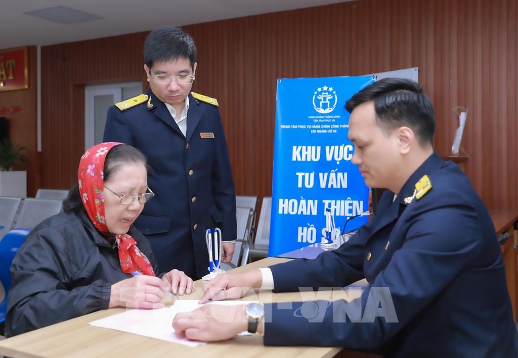 Người dân đến làm thủ tục thuế tại Trung tâm Phục vụ hành chính công chi nhánh số 6. Ảnh: Phan Phương – TTXVN
