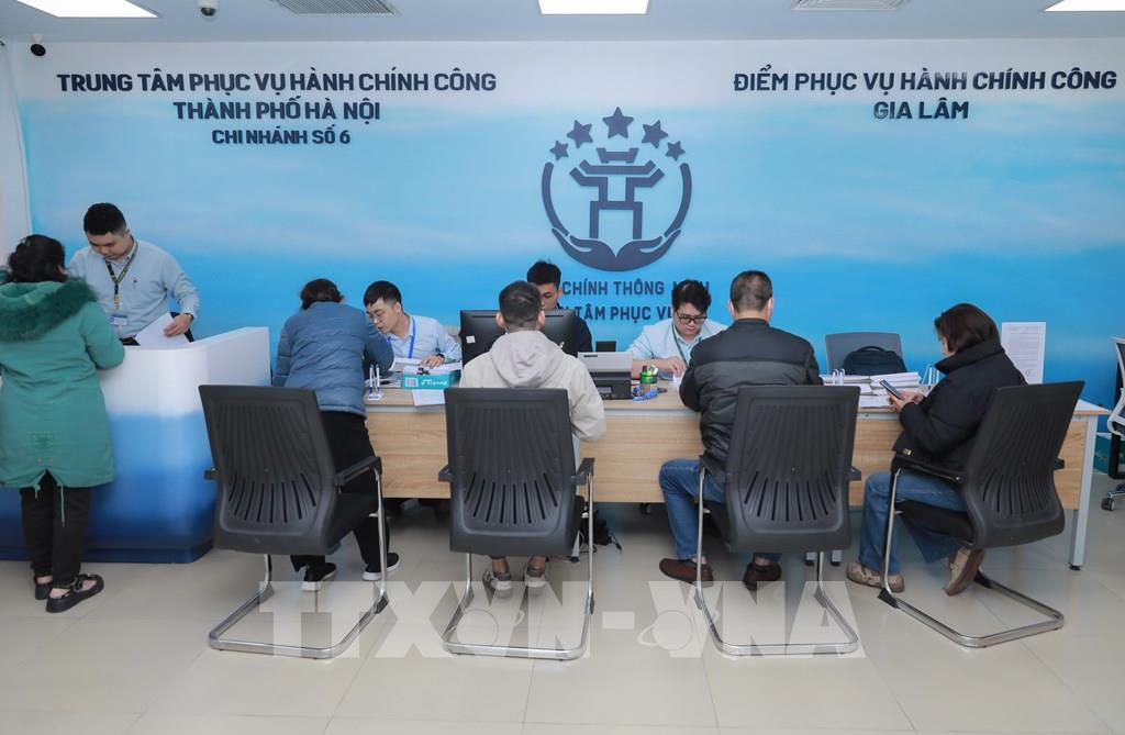 Trung tâm Phục vụ hành chính công chi nhánh số 6 tại xã Gia Lâm là một trong 31 điểm trên địa bàn TP Hà Nội tiếp nhận và giải quyết thủ tục hành chính thuế. Ảnh: Phan Phương – TTXVN