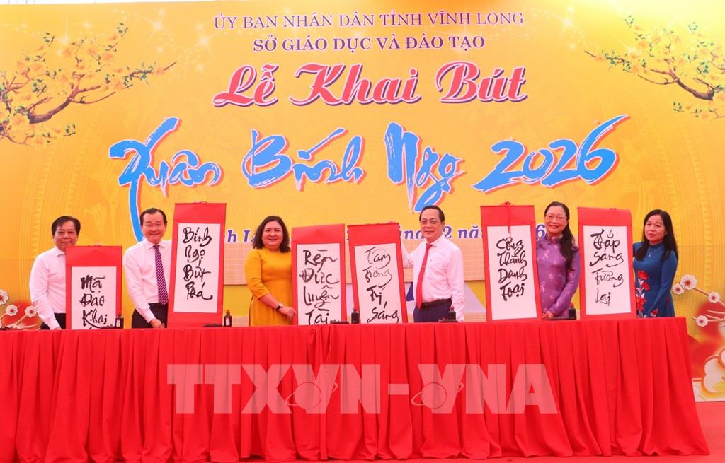 Tại buổi lễ, lãnh đạo tỉnh Vĩnh Long đã viết những dòng chữ đầu Xuân như: “Mã đáo khai Xuân”, “Bính Ngọ bứt phá”, “Rèn đức luyện tài”, “Tâm trong trí sáng – Công thành danh toại”, “Thắp sáng tương lai”. Những nét bút đầu năm gửi gắm niềm tin, khát vọng và ý chí vươn lên mạnh mẽ trong năm Bính Ngọ. Qua đó, lãnh đạo tỉnh kỳ vọng mở ra một năm mới với nhiều thắng lợi, thành công; đồng thời nhắn nhủ mỗi người dân Vĩnh Long, đặc biệt là đội ngũ thầy giáo, cô giáo và học sinh, không ngừng rèn luyện đạo đức, trau dồi tri thức, chung sức đóng góp cho sự phát triển của quê hương, đất nước.
