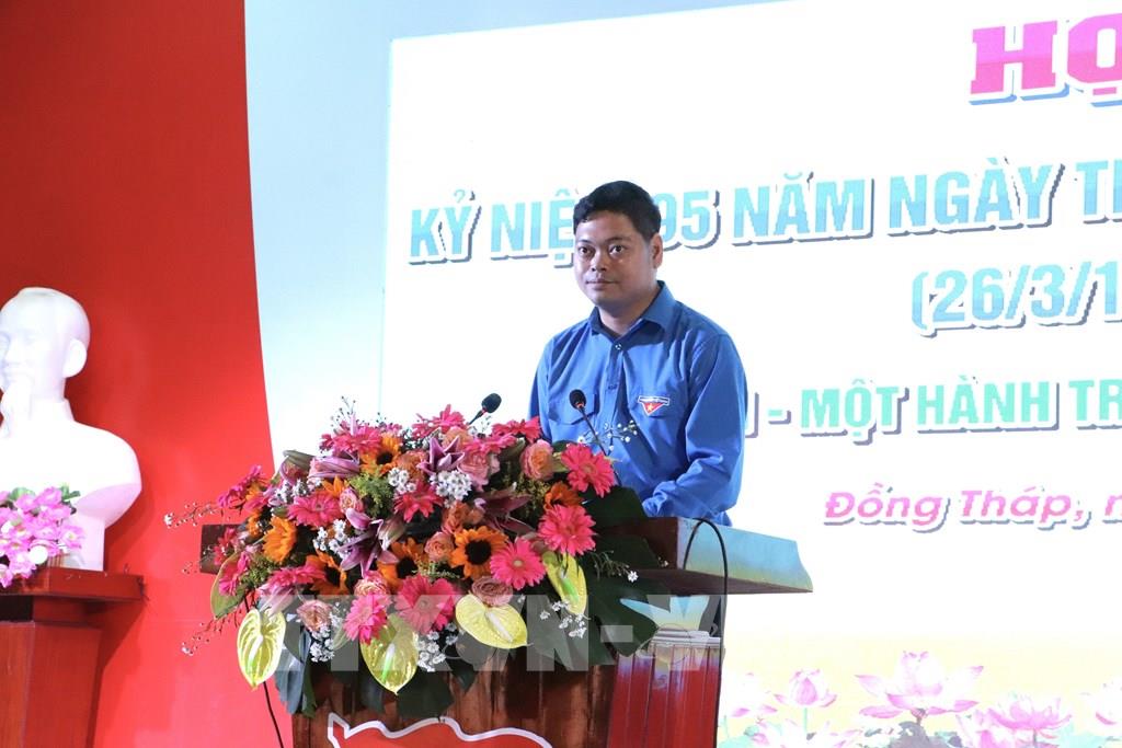 Ông Lê Hoàng Quyết, Bí thư Tỉnh đoàn Đồng Tháp, phát biểu. Ảnh: Hồng Nhung - TTXVN