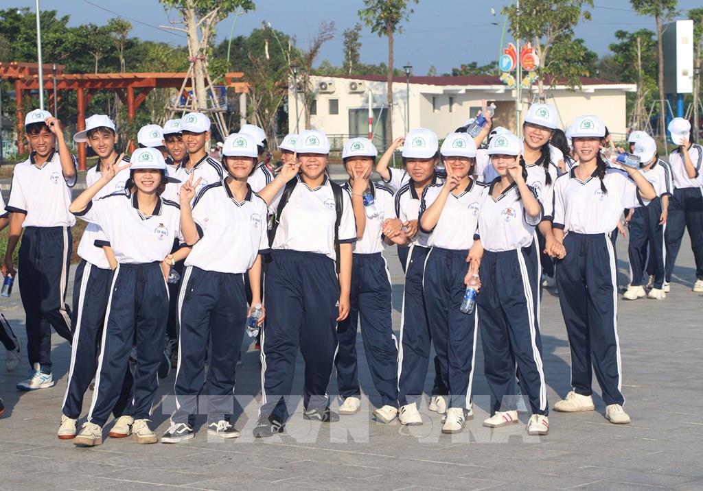 Học sinh tỉnh Cà Mau tham gia đi bộ sau lễ phát động. Ảnh: Tuấn Phi - TTXVN
