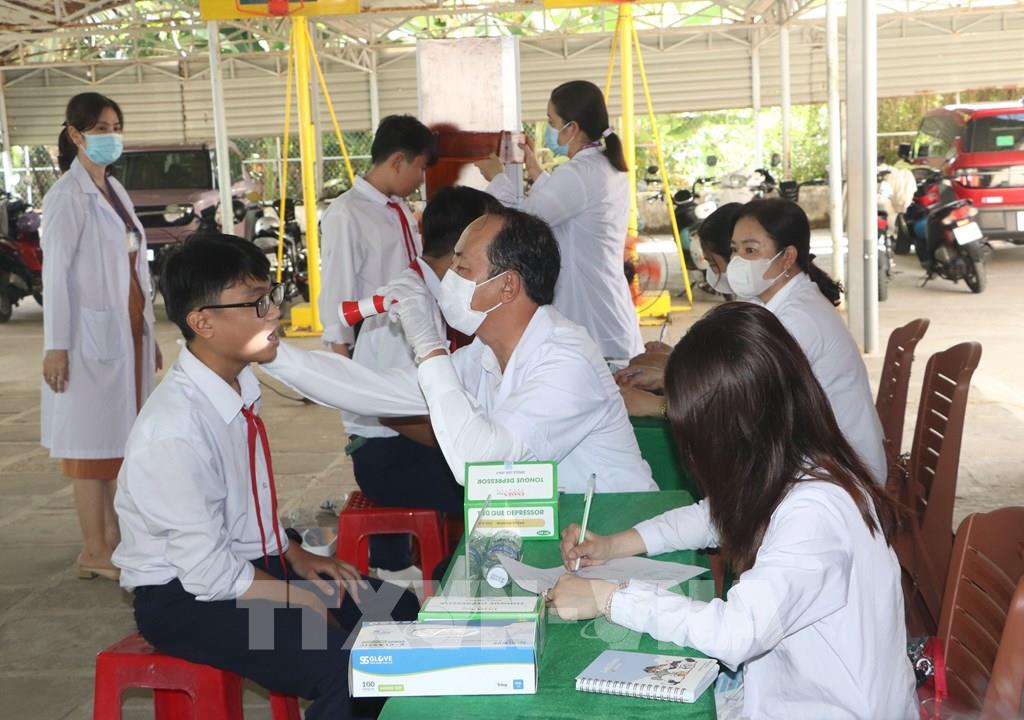 Khám sàng lọc sức khỏe cho học sinh ở phường Tân Thành. Ảnh: Tuấn Phi - TTXVN