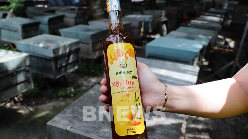 Sản phẩm mật ong hương tràm mang theo những điều gần gũi của vùng đất miền Tây Nam bộ. Ảnh: Hồng Thái-TTXVN