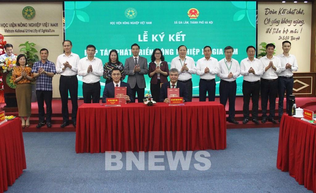Học viện Nông nghiệp Việt Nam và xã Gia Lâm (Hà Nội) ký biên bản ghi nhớ hợp tác. Ảnh: Bích Hồng/Bnews/vnanet.vn