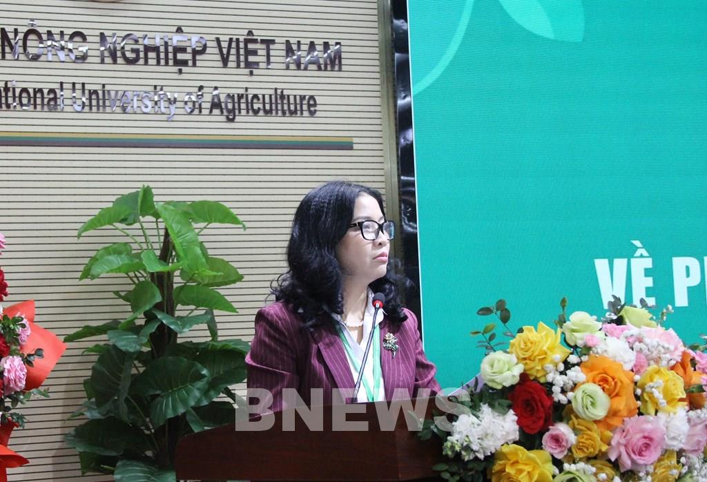 GS.TS Nguyễn Thị Lan, Bí thư Đảng ủy, Giám đốc Học viện Nông nghiệp Việt Nam phát biểu tại hội nghị. Ảnh: Bích Hồng/Bnews/vnanet.vn