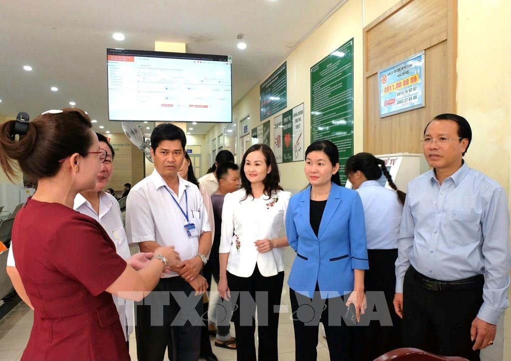 Ủy viên dự khuyết Trung ương Đảng, Phó Bí thư Thường trực Tỉnh ủy Đồng Nai Tôn Ngọc Hạnh (thứ 3, phải sang) đến thăm và chỉ đạo tại Trung Trung tâm Phục vụ hành chính công phường Bình Phước. Ảnh: K GỬIH –TTXVN