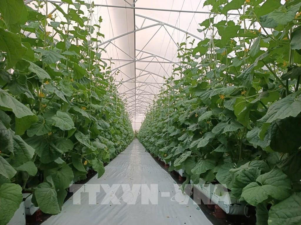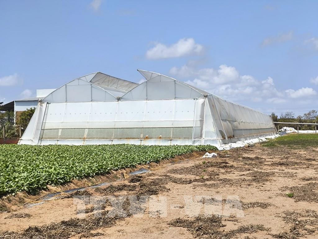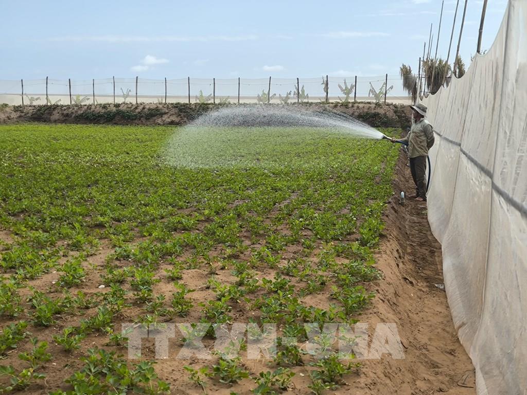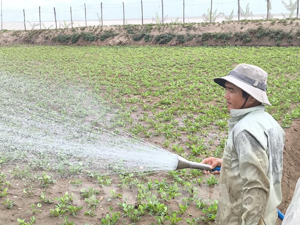 Người dân an tâm sản xuất trong khu vực kè chống sạt lở. Ảnh: Huỳnh Phúc Hậu - TTXVN