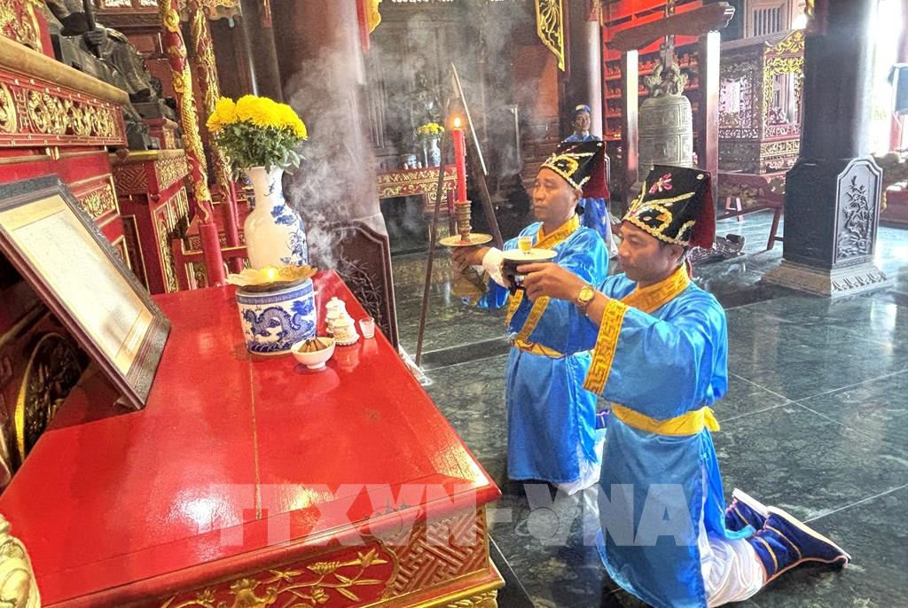 Nghi thức học trò dâng lễ tại lễ tri ân các tướng lĩnh quê hương Đồng Tháp. Ảnh: Hồng Nhung - TTXVN