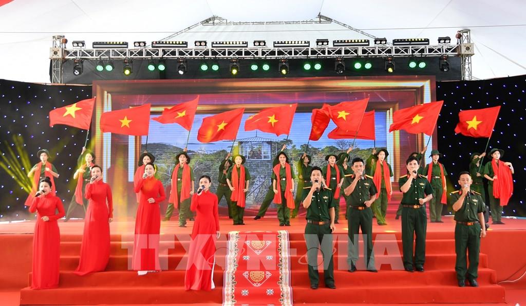 Tiết mục văn nghệ tại buổi họp mặt. Ảnh: Văn Sĩ - TTXVN