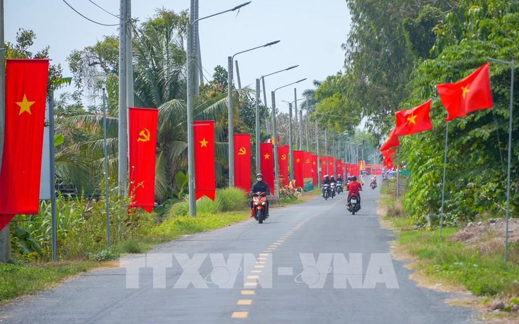 Đường cờ rực rỡ chào mừng Đại hội XIV của Đảng ở xã Cờ Đỏ, thành phố Cần Thơ. Ảnh: Thanh Liêm - TTXVN