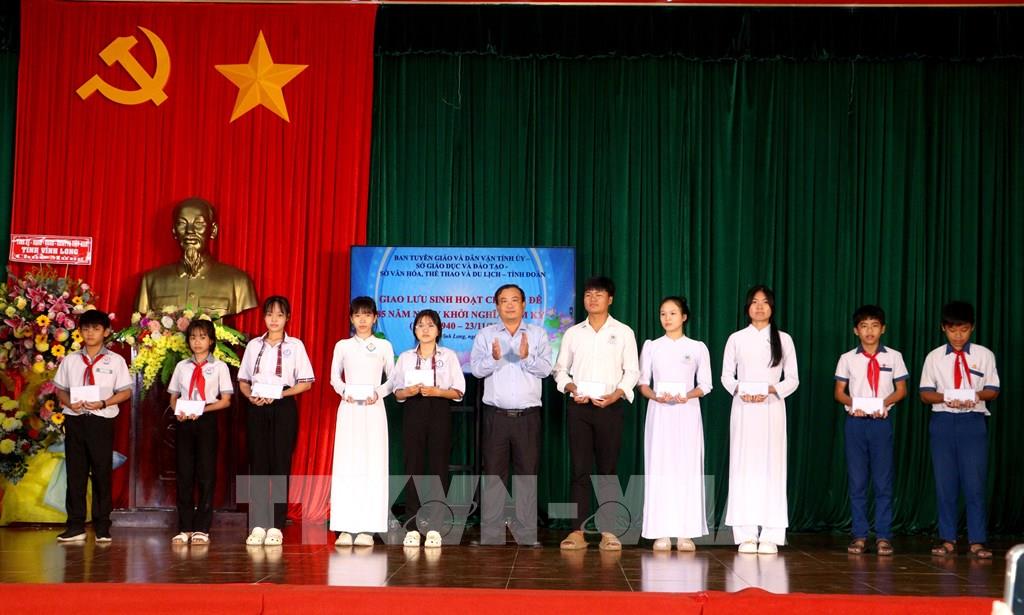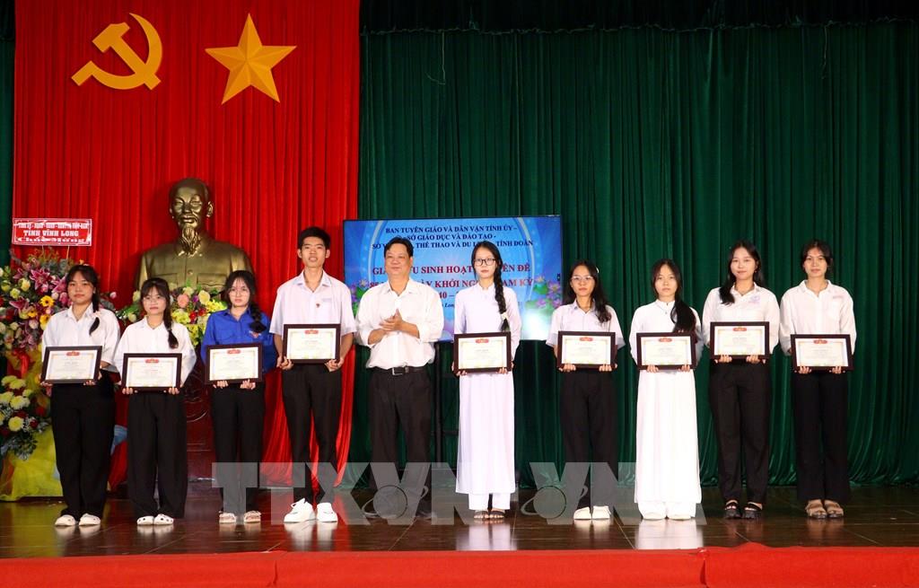 Em Phạm Thanh Long (Trường Trung học Cơ sở Nguyễn Chí Trai, xã Trung Ngãi) cho biết, tham gia hội thi sân khấu hóa với chủ đề “Sáng mãi tinh thần Nam Kỳ Khởi nghĩa”, em cùng hơn 20 bạn đã dành hơn một tháng luyện tập. Các em tìm hiểu tư liệu lịch sử để hiểu rõ về cuộc khởi nghĩa; nhờ thầy cô hướng dẫn thêm, xây dựng nội dung tiết mục đúng với sự thật lịch sử, thể hiện được ý nghĩa, giá trị của cuộc khởi nghĩa. Quá trình tìm hiểu giúp em cảm nhận sâu sắc sự hy sinh của các thế hệ đi trước để đất nước được hoà bình, độc lập hôm nay. Thông qua tiết mục, em mong muốn lan tỏa tới các bạn thông điệp trân trọng giá trị hòa bình, giữ gìn truyền thống cách mạng, cùng nhau học tập, phát huy những giá trị lịch sử của cha ông.Tại chương trình, Sở Giáo dục và Đào tạo tỉnh Vĩnh Long phát động học sinh, sinh viên tham gia viết bài cảm nhận chủ đề “Tự hào 85 năm Khởi nghĩa Nam Kỳ - bài học lịch sử và trách nhiệm của thế hệ trẻ hôm nay". Ban Tuyên giáo và Dân vận Tỉnh ủy Vĩnh Long trao thưởng cho học sinh có bài viết hay tại cuộc nói chuyện chuyên đề nhân kỷ niệm 80 năm Cách mạng tháng Tám và Quốc khánh 2/9; Ban Tổ chức cũng trao 10 suất học bổng cho học sinh khó khăn học giỏi, khen thưởng các đội xuất sắc trong hội thi sân khấu hóa.