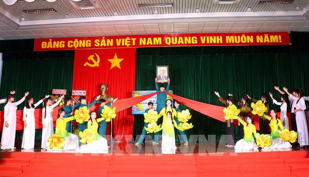 Tiết mục tham gia hội thi sân khấu hóa với chủ đề “Sáng mãi tinh thần Nam Kỳ Khởi nghĩa”. Ảnh: Lê Thúy Hằng – TTXVN