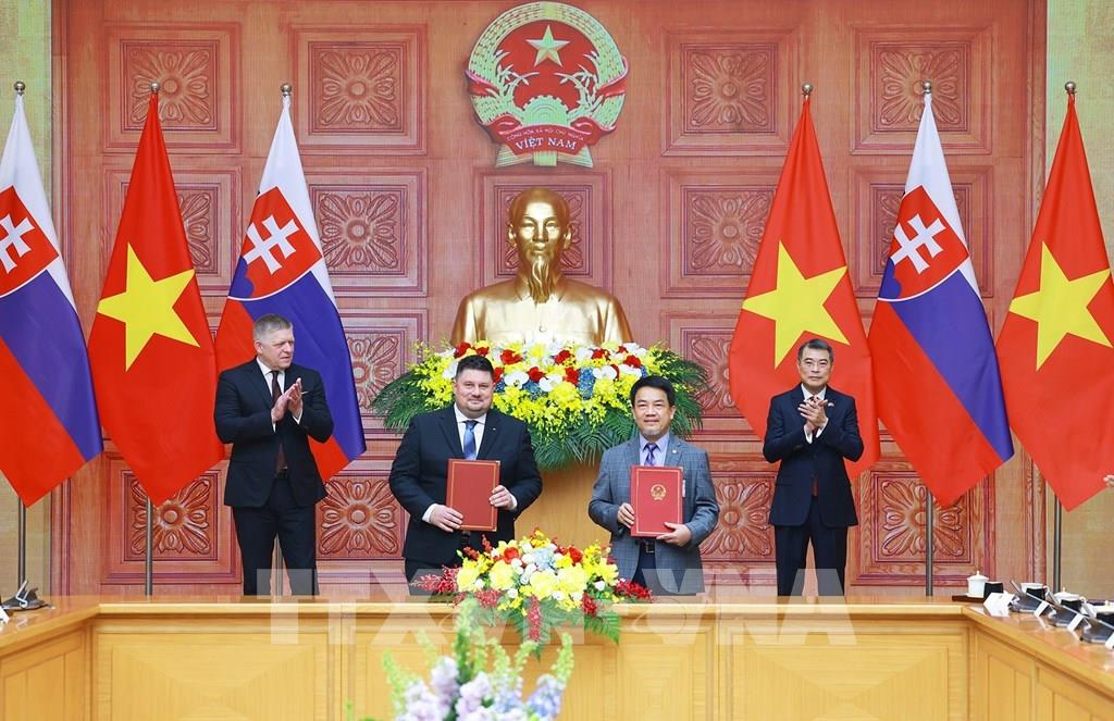 Phát huy nền tảng 75 năm quan hệ song phương, Thủ tướng Chính phủ nước Cộng hòa xã hội chủ nghĩa Việt Nam và Thủ tướng Chính phủ nước Cộng hòa Slovakia đã nhất trí thông qua Tuyên bố chung về việc nâng cấp quan hệ Việt Nam - Slovakia lên Đối tác Chiến lược.