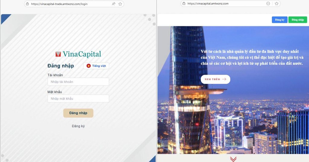 Ủy ban Chứng khoán Nhà nước nhận được báo cáo của Công ty cổ phần Quản lý Quỹ VinaCapital liên quan đến dấu hiệu giả mạo, lừa đảo, sử dụng bất hợp pháp thương hiệu, logo và sản phẩm của Công ty cổ phần Quản lý Quỹ VinaCapital để thực hiện hành vi lừa đảo chiếm đoạt tài sản của nhà đầu tư trên một số website như https://vinacapital-trade.amtwznz.com/login; https://vinacapital.amtwznz.com/.