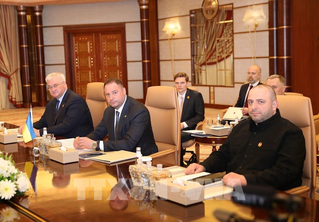 Chánh văn phòng Tổng thống Ukraine Andriy Yermak (giữa, phía trước) trong cuộc gặp với phái đoàn Mỹ tại Jeddah, Saudi Arabia về đề xuất hoà bình do Mỹ bảo trợ nhằm chấm dứt xung đột ở Ukraine, ngày 11/3/2025. Ảnh: THX/TTXVN
