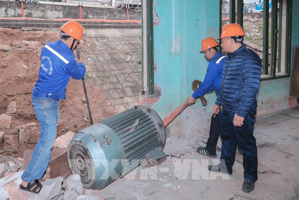 Bốn tổ máy tại trạm bơm cũ đang được tháo dỡ để lắp đặt bốn tổ máy mới, có công suất lớn hơn 1,5 lần so với hệ thống cũ. Ảnh: Phan Phương – TTXVN