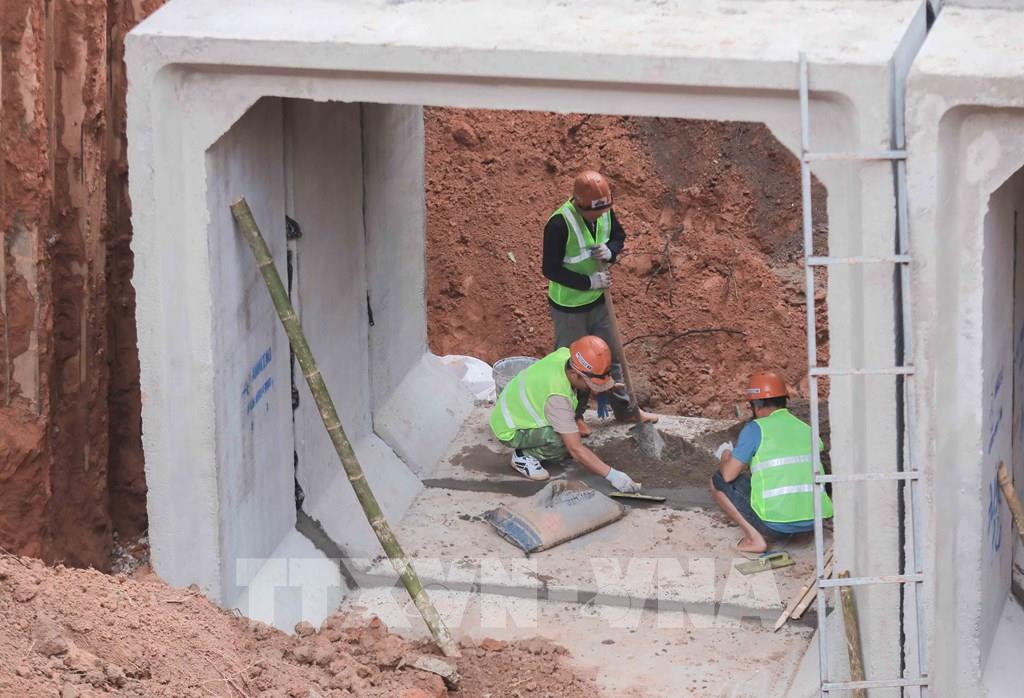 Nhà thầu tổ chức thi công 3 ca, 4 kíp xuyên đêm, xuyên Tết, phấn đấu hoàn thành và thông nước vào ngày 30/4/2026. Ảnh: Phan Phương – TTXVN