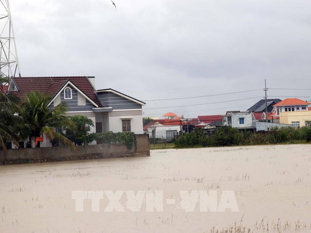 Nhiều vùng trũng thấp ở xã Thuận Nam (Khánh Hòa) vẫn bị ngập lụt. Ảnh: Công Thử - TTXVN