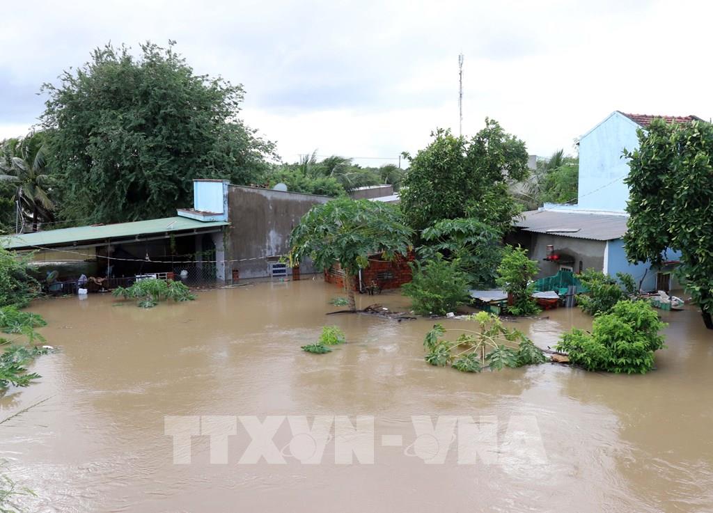 Nhiều địa phương ở xã Ninh Phước (Khánh Hòa) bị cô lập do mưa lũ sáng 20/11. Ảnh: Công Thử - TTXVN