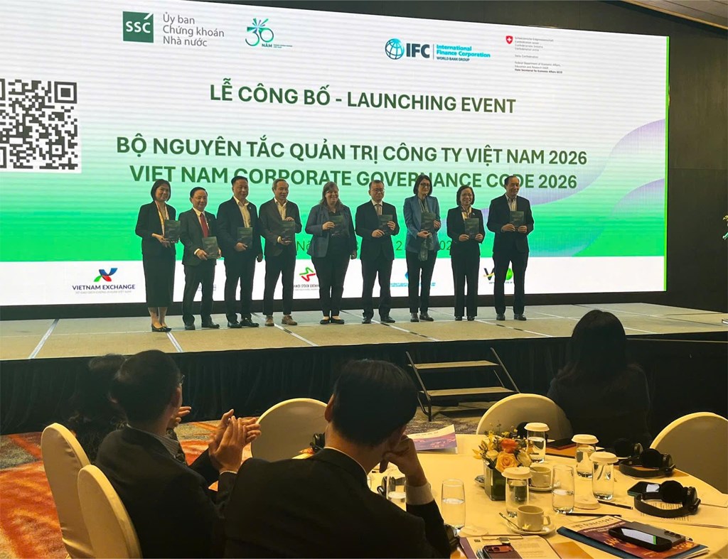 Sáng 3/2, Ủy ban Chứng khoán Nhà nước phối hợp với Tổ chức Tài chính Quốc tế (IFC) tổ chức Lễ Công bố Bộ Nguyên tắc quản trị công ty Việt Nam 2026 (Vietnam Corporate Governance Code – CG Code 2026). Sự kiện được tổ chức trong khuôn khổ chương trình hợp tác giữa Ủy ban Chứng khoán Nhà nước và IFC, với sự hỗ trợ của Tổng cục Kinh tế Liên bang Thụy Sỹ (SECO), nhằm tiếp tục nâng cao chất lượng thực hành quản trị công ty tại các công ty đại chúng, công ty niêm yết ở Việt Nam theo chuẩn mực và thông lệ quốc tế.