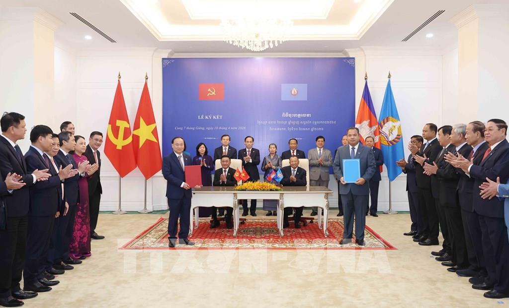 Theo đặc phái viên TTXVN, trong khuôn khổ chuyến thăm chính thức Vương quốc Campuchia, trưa 10/4, tại Cung 7/1 - Trụ sở Trung ương Đảng Nhân dân Campuchia ở thủ đô Pnom Penh, Ủy viên Bộ Chính trị, Thường trực Ban Bí thư Trần Cẩm Tú và Phó Chủ tịch Đảng Nhân dân Campuchia, Trưởng Ban Thường trực Ban Thường vụ Trung ương Đảng Nhân dân Campuchia Say Chhum đã chứng kiến Lễ trao các văn kiện hợp tác giữa các địa phương hai nước.