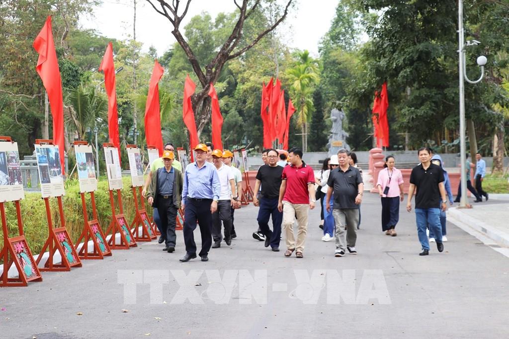 Du khách tham quan nhà sàn Bác Hồ trong khu di tích. Ảnh: Hữu Chí - TTXVN