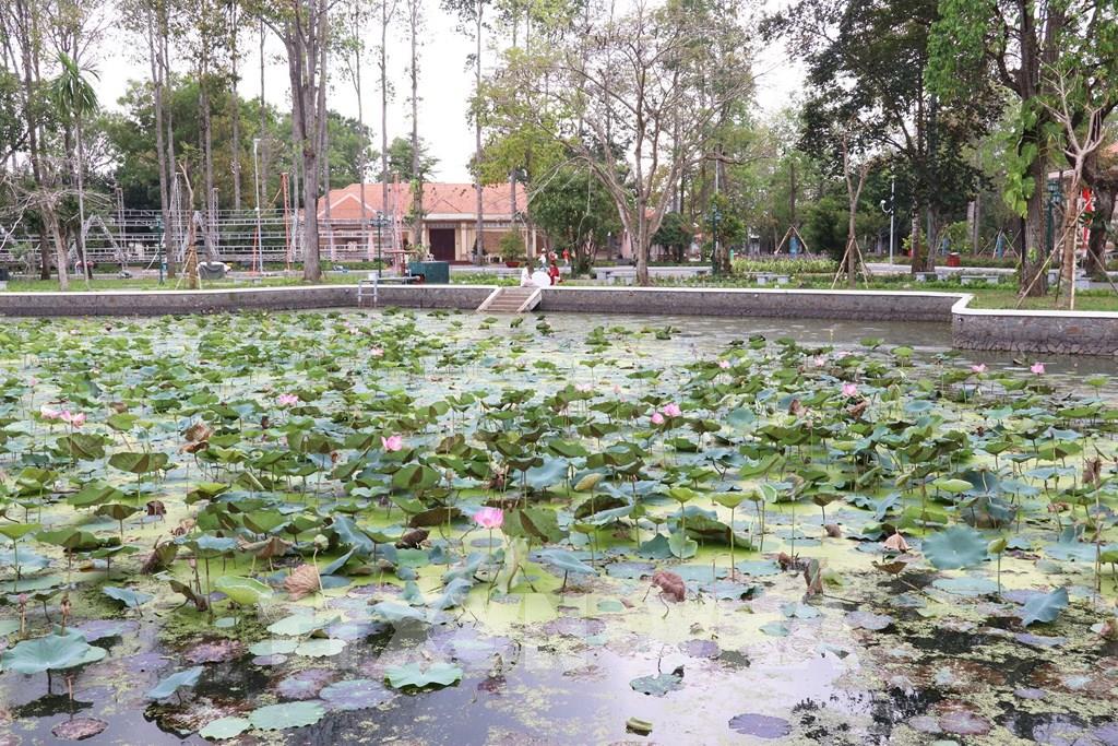 Ao sen trước ngôi nhà sàn Bác Hồ trong khu di tích. Ảnh: Hữu Chí - TTXVN