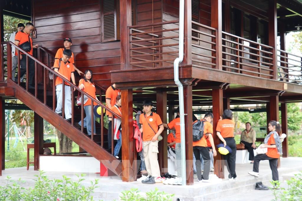 Khách du lịch tham quan nhà sàn Bác Hồ trong Khu di tích quốc gia đặc biệt Mộ cụ Phó bảng Nguyễn Sinh Sắc. Ảnh: Hữu Chí - TTXVN