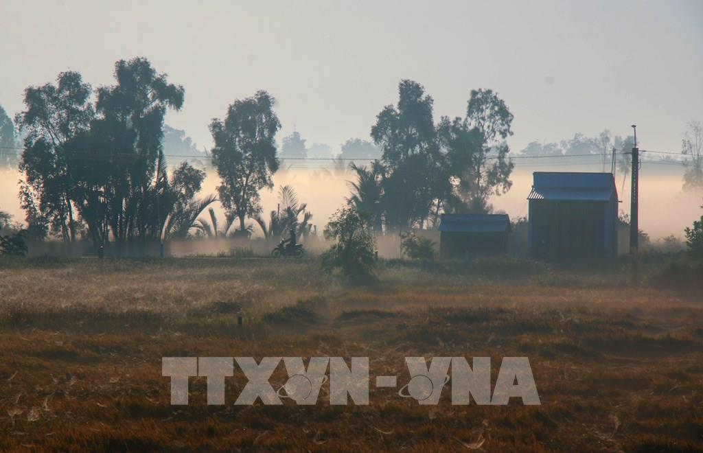 Vẻ đẹp mộc mạc của vùng quê Cần Thơ trong sương sớm. Ảnh: Duy Khương - TTXVN