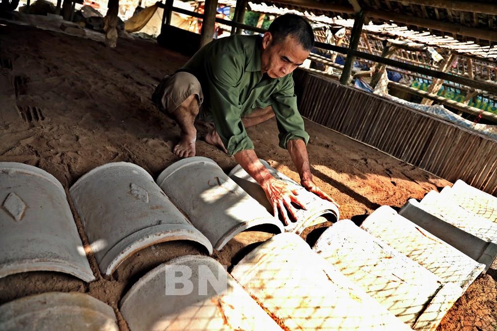 Ông Hoàng Công Hưng, một thợ làm ngói lâu năm, chia sẻ: “Các con tôi từ 15 tuổi đã bắt đầu giúp đỡ gia đình làm ngói ngoài giờ đi học và rất yêu nghề truyền thống của gia đình. Tôi tin, chúng sẽ nối nghiệp và trở thành đời thứ 4 làm nghề sản xuất ngói âm dương”. Ảnh: Đức Hạnh/Bnews/vnanet.vn