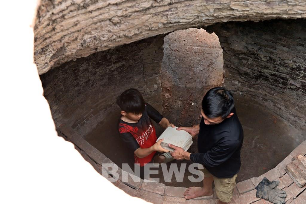 Mỗi mẻ nung lên tới 60.000 viên ngói, thời gian liên tục từ 10 đến 15 ngày đêm. Sau đó ngói được để nguội trong lò thêm 5 ngày trước khi lấy ra, phân loại. Ảnh: Đức Hạnh/Bnews/vnanet.vn
