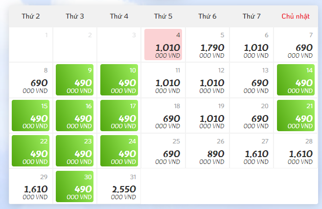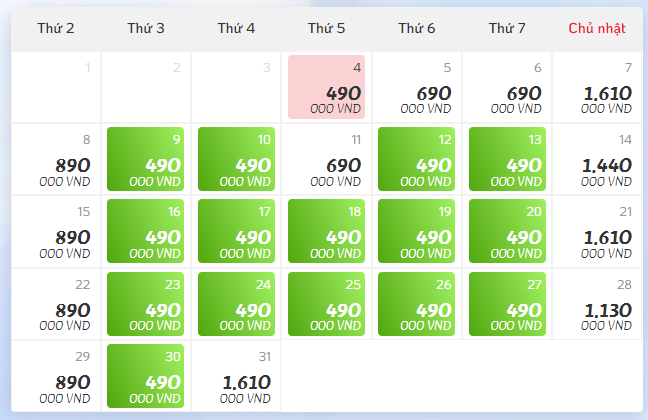| Chủ nhật | Thứ 2 | Thứ 3 | Thứ 4 | Thứ 5 | Thứ 6 | Thứ 7 |