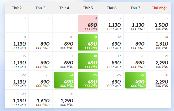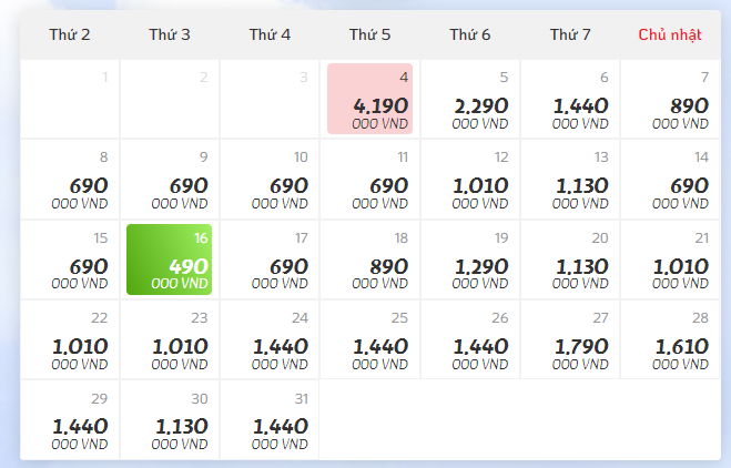 | Chủ nhật | Thứ 2 | Thứ 3 | Thứ 4 | Thứ 5 | Thứ 6 | Thứ 7 |
