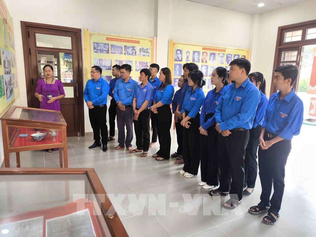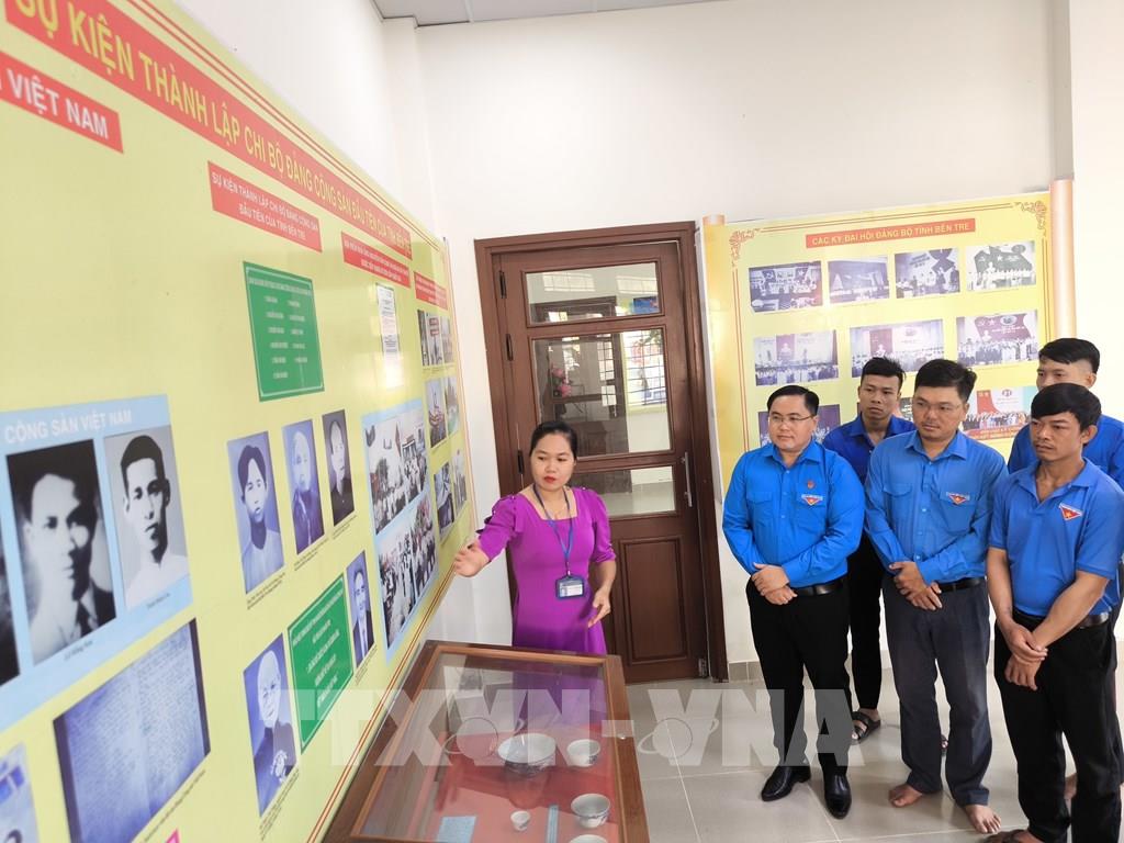 Đoàn viên thanh niên tỉnh Vĩnh Long thăm quan, tìm hiểu về lịch sử thành lập Chi bộ Đảng đầu tiên của tỉnh Bến Tre (cũ) tại xã Tân Xuân, tỉnh Vĩnh Long. Ảnh: Huỳnh Phúc Hậu - TTXVN