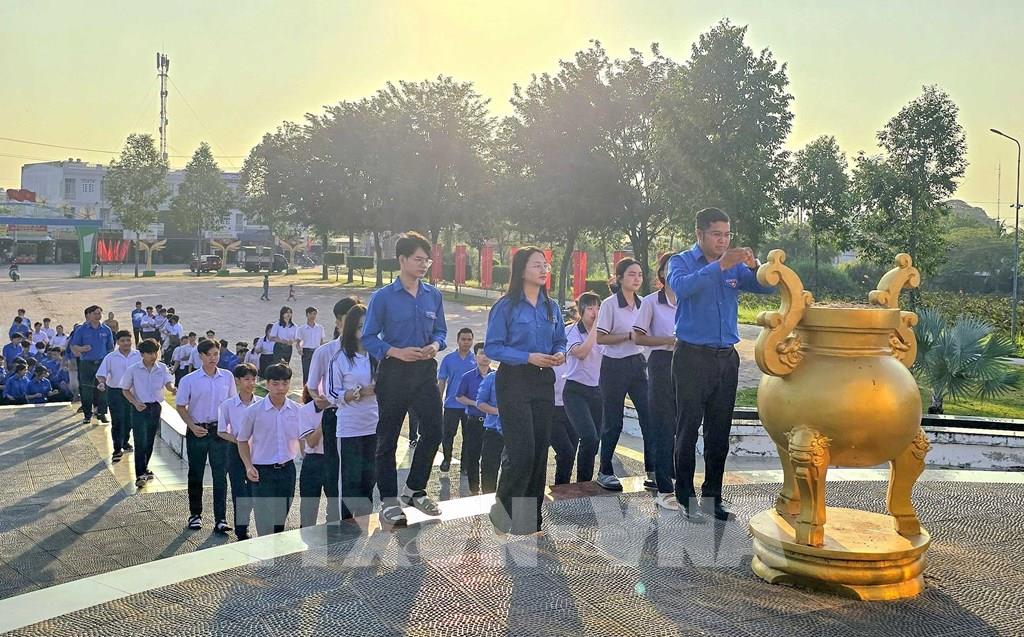 Đoàn viên thanh niên xã Cờ Đỏ dâng hương Khu di tích An Nam Cộng sản Đảng Cờ Đỏ. Ảnh: Thanh Liêm - TTXVN