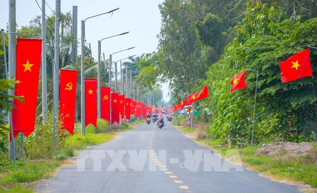 Đường cờ rực rỡ chào mừng Đại hội XIV của Đảng ở xã Cờ Đỏ. Ảnh: Thanh Liêm - TTXVN
