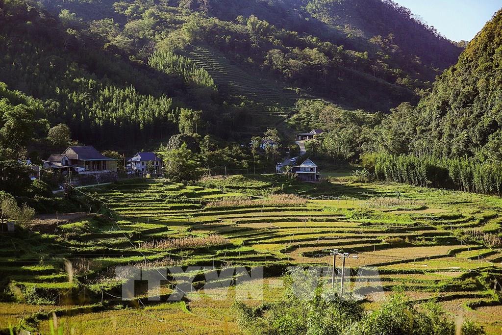Xóm Chiến, nơi có nhiều hộ làm du lịch cộng đồng của xã Vân Sơn. Ảnh: Trọng Đạt-TTXVN