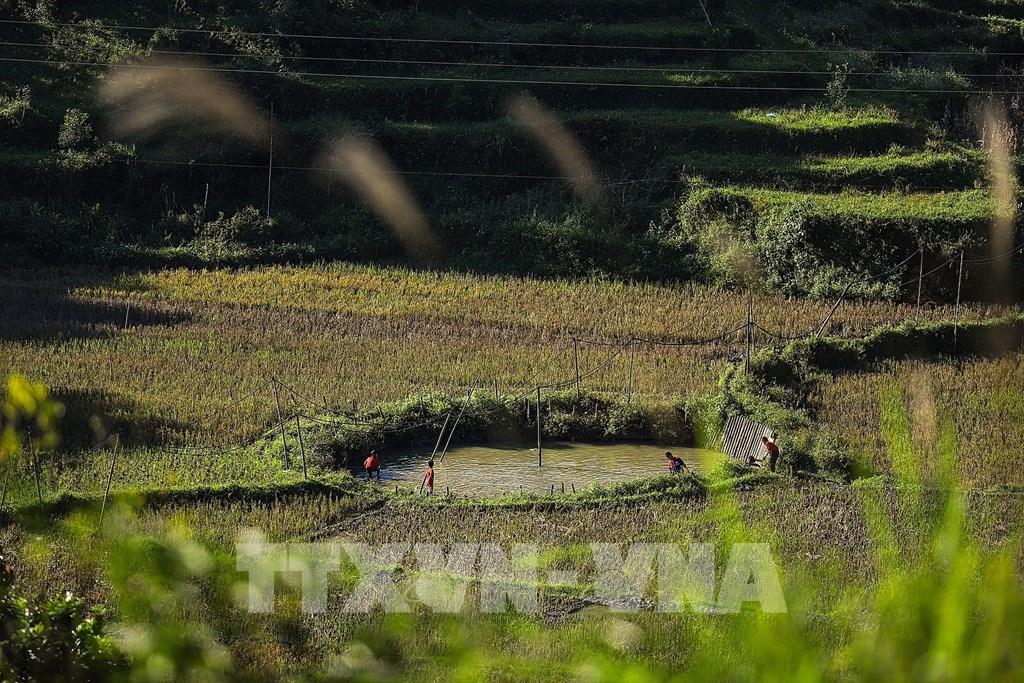 Những nếp nhà sàn nằm xen ruộng bậc thang tạo nên vẻ đẹp yên bình và trong lành của xã Vân Sơn (Phú Thọ). Ảnh: Trọng Đạt - TTXVN