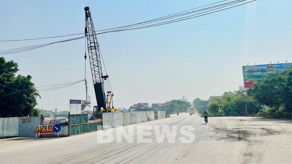 Cầu Đa Phúc bắc qua sông Công nối Hà Nội với Thái Nguyên được khởi công từ tháng 8/2022 nhưng đến nay nhà thầu vẫn chưa thể thi công vì vướng mặt bằng. Ảnh: CTV/BNEWS/TTXVN